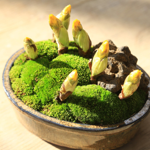 早春、あざやかな黄色の花が咲きおめでたい花とされています。新春に3-4cmの黄色い花を咲かせます。春を告げる花の代表であることから元日草(がんじつそう)とも呼ばれ花は太陽光に応じて開閉(日光が当たると開き、日が陰ると閉じる)します。夏になると地上部は枯れますが、また芽が出て2月頃(旧暦の正月)には花が咲きます。