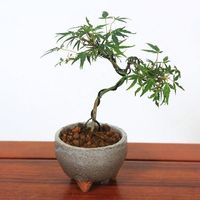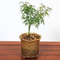 八房性の葉が特徴のもみじです。 幹の種類をお選び下さい。 曲(信楽焼足付灰丸鉢) 職人が丁寧に見事な曲を作りあげております or 直(信楽焼鉄伊羅保足付鉢) スラっと伸びた幹も魅力です 室内での鑑賞期間の目安は2〜3日です。 通常は室外にてお育て下さい。