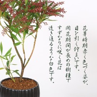 常緑樹。 2〜3月頃にスズランのような愛らしい白いお花が楽しめます。 花芽時期赤く色づく姿が、目を引く佇まいです。 開花期間が長めの樹種ですずなりに咲く花は 透き通るような白色です。 例年2月下旬頃〜3月頃に開花、 開花後3月下旬頃〜翌年2月頃開花始まる迄は葉姿でのお届けになります。 花芽時期赤く色づく姿が、目を引く佇まいです。 開花期間が長めの樹種ですずなりに咲く花は 透き通るような白色です。 *数量物の為、若干樹形・鉢が異なる場合がございます。 *例年2月下旬頃〜3月頃に開花、開花後3月下旬頃〜翌年2月頃開花始まる迄は葉姿でのお届けになります。