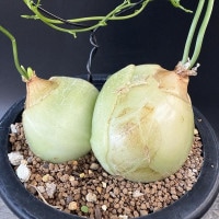 蒼角殿(そうかくでん)は緑色の玉ねぎのような球根からじぐざぐしたツルを伸ばします。