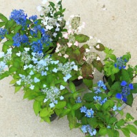 山紫陽花(2.5寸-4寸ポット):品種は不明となりますが、青色や白色、八重や一重の6月に清楚なお花を咲かせます。