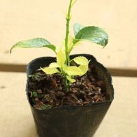 葉の色変わり品種となります。黄色い葉の上に黒い実がなるので、目立つ品種です。