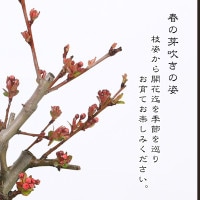 落葉樹。 4月に美しい花が咲きます。絶世の美女「楊貴妃」を 思わす花とされる「花かいどう」の盆栽です。 *数量物の為、若干樹形・鉢が異なる場合がございます。 11-3月は蕾の状態、2-3月は開花した状態。4月-10月は葉姿でのお届けになります。