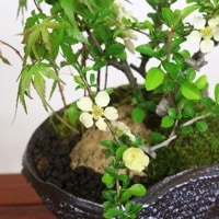 名前から「長寿」という意味を表し、縁起が良いとされ人気の長寿梅と、四季を感じられる山もみじとの寄せ植えです。 足元には緑が美しい苔を貼っており、完成品ですので、そのまますぐに飾れます。 ・山もみじ もみじは、芽出し、新緑、紅葉、寒樹の美と四季折々の変化を楽しむことが出来ます。丈夫で育てやすい人気樹種です。 特に山もみじは盆栽に適した特性をもった種類です。