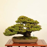 葉が短く、芽が細かい八房性の五葉松です。 この雄々しい葉が一年中楽しめます。 古味を帯び年月を感じる幹も迫力がありとても飾り栄えします。 展示会で賞を狙える程の逸品です。