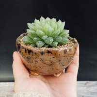 多肉植物:ハオルチア 光るオブツーサ 信楽焼 竹鳳鉢*幅6cm