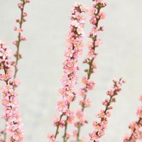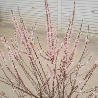 3―4月に長く伸びた枝に梅に似たピンク色の小ぶりで可愛い花が密集してつきます。 花後には赤い実がなります。