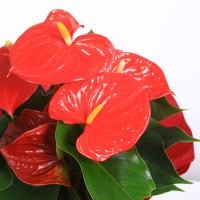 科目:サトイモ科/属名:アンスリウム属/別名:紅団扇(ベニウチワ)/花言葉:情熱/非耐寒性常緑多年草/ 花時期5〜10月/草丈30〜50cm/耐寒温度約15℃(環境・生育状況により変わります)