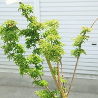獅子のたてがみを思わせる、独特な葉の形が特徴です。流通量は少なく珍しいモミジです。 秋の紅葉は美しいオレンジ色です。