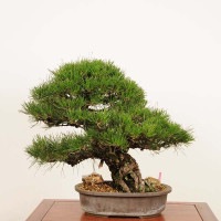 常緑樹。太くどっしりとした力強い幹をしています。黒松ならではの幹肌の時代感も見ごたえがあります。黒松は盆栽界で代表的な樹種のひとつで、雄々しい姿から『男松』とも呼ばれています。年月を重ねるにつれて、幹肌が荒れて野趣に富んできます。