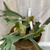 黄色味を帯びた葉が特徴的で、生長すると鹿の角のような形状の胞子葉が伸び、インパクトのある姿になります。