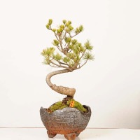 常緑樹。雄々しい葉姿が魅力の松柏盆栽です。 力強く迫力がある幹に、バランスよく枝ができています。この雄々しい葉が一年中楽しめます。 幹はしっかりと模様がつき迫力のある太い幹が魅力です。