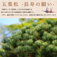 | 商品情報 | 樹種:五葉松(ゴヨウマツ) 品種:葵(アオイ) 撮影:1月 常緑樹。 五葉松は盆栽の代表格のひとつで、 名前から「御用を待つ」という意味を表し、 縁起が良いとされています。 品種「葵」は那須五葉松の貴賓種で、 五葉松の理想的と称される美しい葉を持つ品種です。