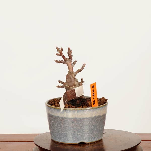 落葉樹。春に白地にピンクがかった色の可愛いお花が咲き、そこに実をつけます。 秋になり涼しくなると 赤く色づきます。 幹も太くてりっぱな一鉢です。