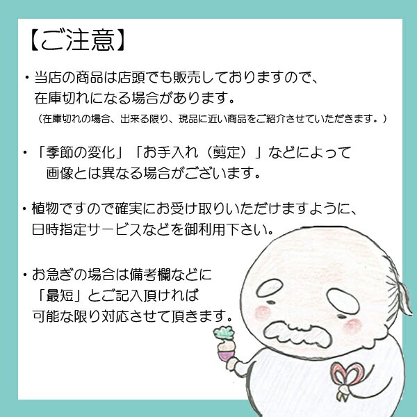 簡単な育て方説明書をお付けいたします。 ご購入後、詳しい手入れ方法を知りたい方は、メール・電話等でお問い合わせ下さい。